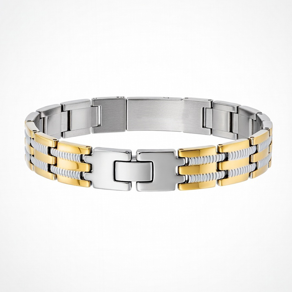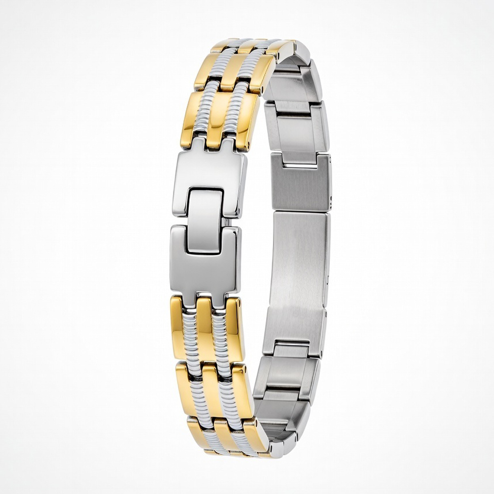 Deze 2 kleuren RVS armband is gemaakt van RVS. Dit is een mooi en sierlijk sieraad en zeer draag vriendelijk omdat het anti allergisch is. Er zijn van dit sieraad maar een beperkt aantal beschikbaar. Speciaal gemaakt om als SOS armband, ID armband en ICE armband gebruikt te kunnen worden.