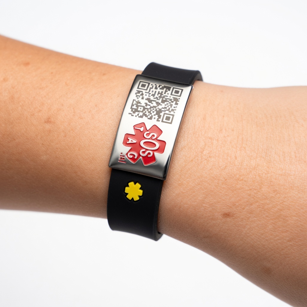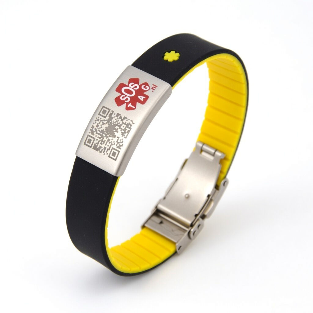Deze armband is gemaakt van stevig en soepel siliconen en is voorzien van een unieke QR-code tag. Speciaal gemaakt om als SOS armband of ID armband of ICE armband gebruikt te kunnen worden.