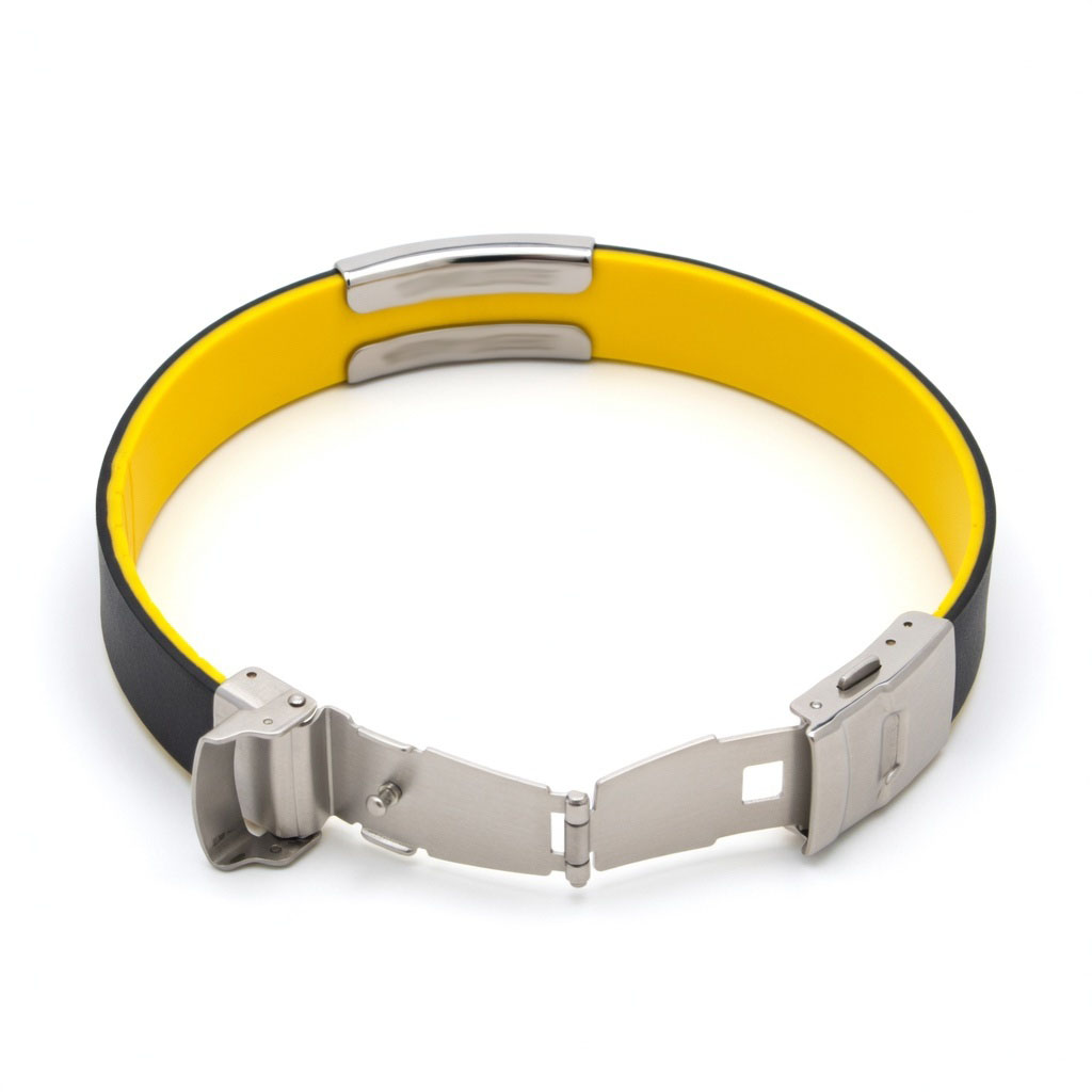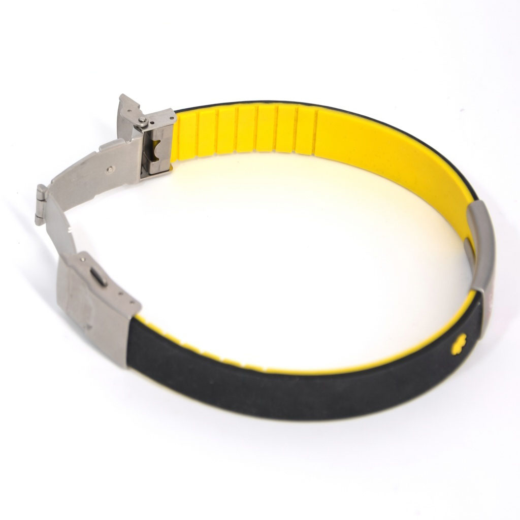 Sportarmband RVS clip en geel / zwart siliconen band (141)
